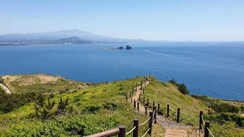 삼면이 바다로 둘러싸인 송악산 둘레길을 추천합니다.