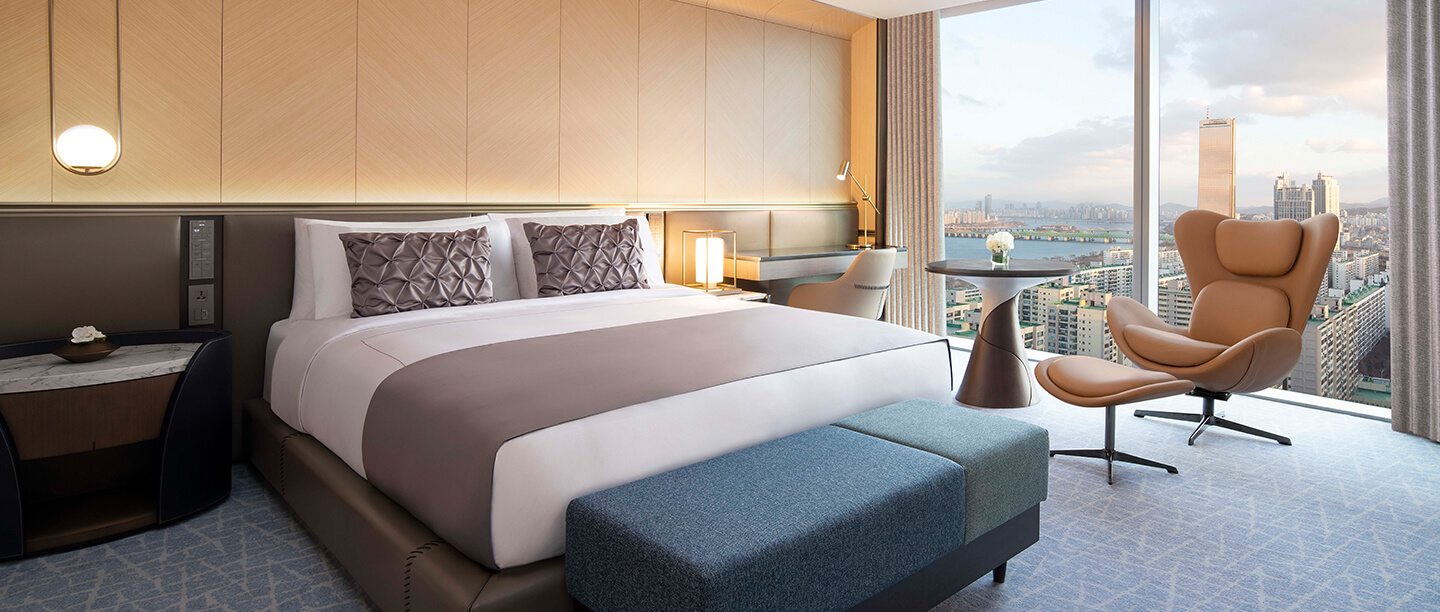 여의도에 있는 호텔로 한강이 잘 보이는 뷰를 사진에서 볼 수 있습니다.